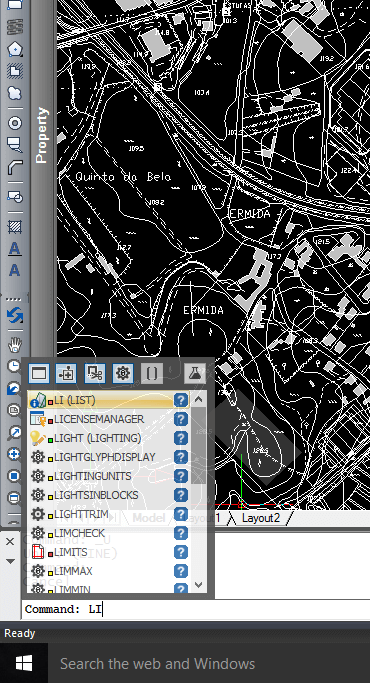 Cuando digita en la barra de comando, IntelliCAD sugiere nombres de comandos correspondientes a medida que digita el comando. Los nombres sugeridos aparecen en una ventana Completar automáticamente. Simplemente seleccione el comando deseado en la lista. Además de los nombres de comandos, las sugerencias pueden incluir nombres de comandos externos, variables de sistema, alias y funciones LISP.